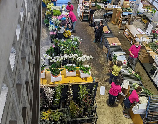 お花の卸売りをしている当社は、店舗や企業様へのお花の配達を主に行っており、県外のお客様へは郵送で対応しております。