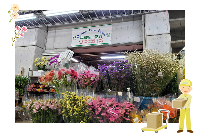 当社は沖縄県を拠点としておりますが、県内外を問わずお花の卸売りを行っております。